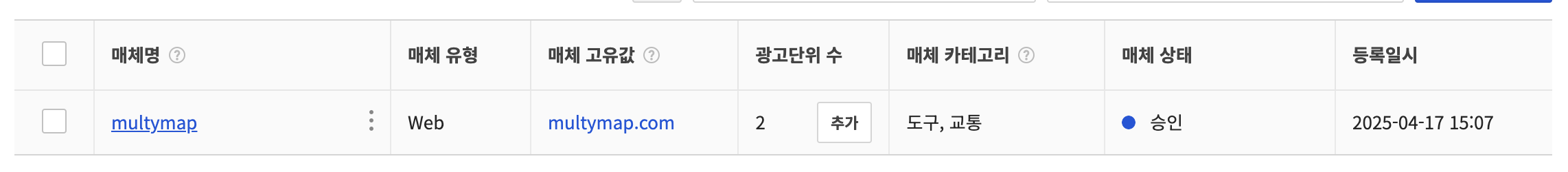 성공적으로 등록되면 광고단위를 추가할 수 있습니다. 광고 단위란 웹사이트에 개시할 광고의 수를 의미합니다.